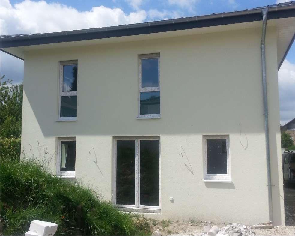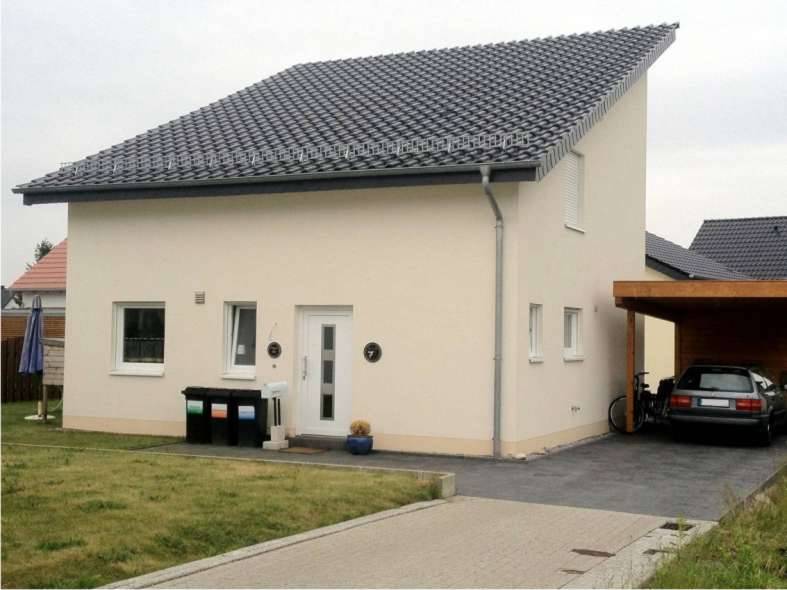 Dieses Haus ist fertiggestellt. Es bietet durch den Ausbau des Obergeschosses viel Platz für eine Familie mit Kindern.