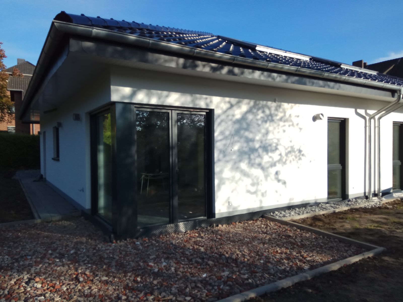 Dieser schicke Bungalow steht in Bad Oeynhausen, auf der Steinbrede.Die Wohnfläche beträgt 106 m². Das Haus wurde nach modernstem energetischen Standard,inkl. Dreifachverglasung ohne Keller errichtet.
